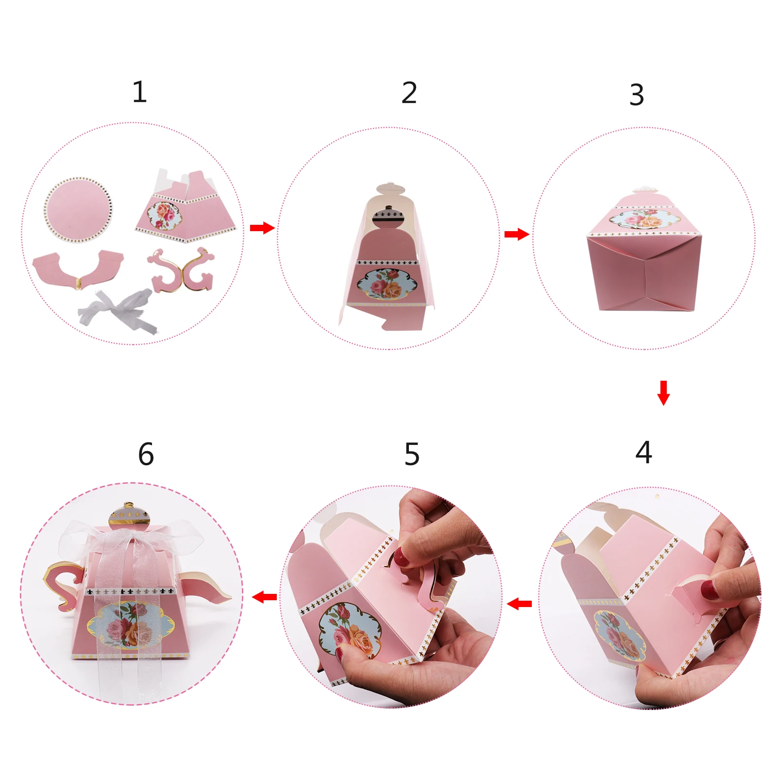 10pcs Teapot Candy Box with Ribbon Gift Wedding Favour Sweet Cake Gift Boxes Baby Shower Souvenirs