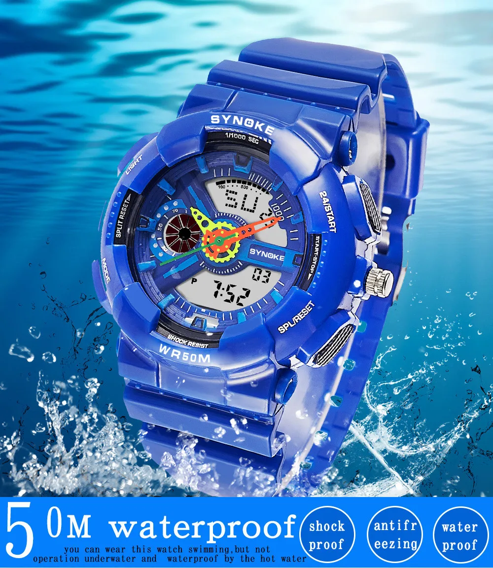 SYNOKE Children watch Multi-Function 50M Waterproof Watch LED Digital Double Action Watch birthday