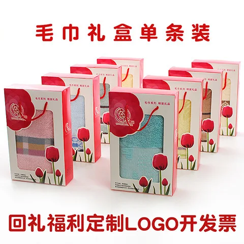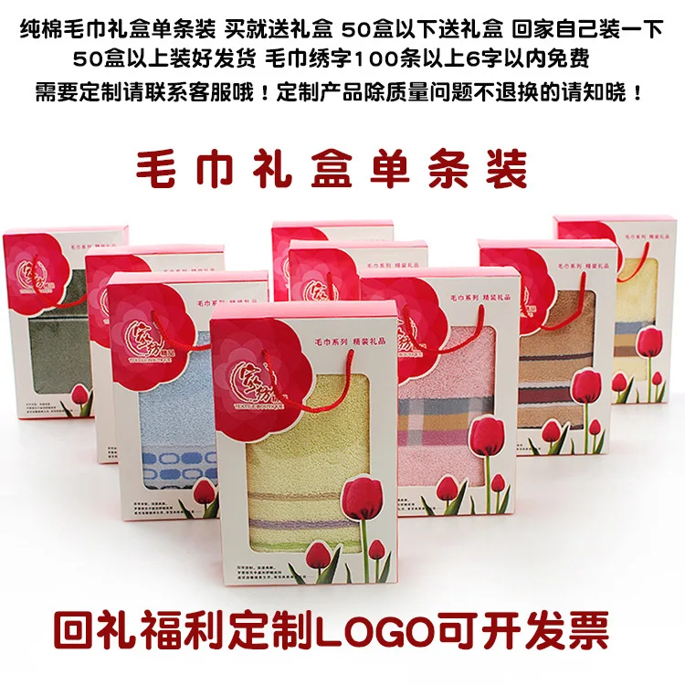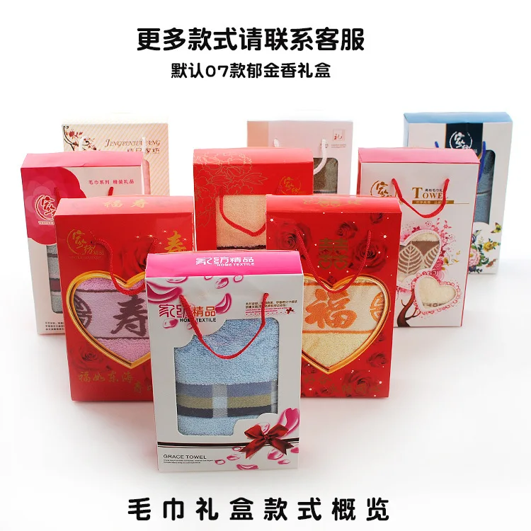 Towel Pure Cotton Single Gift Box Marriage Gift Return Souvenir Birthday Gift Benifit Embroidered W