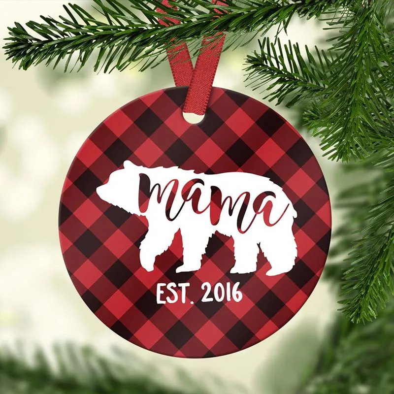 BEST SELLER Custom Ceramic Christmas Ornaments Handmade Personalized Wedding Souvenir Plaid Disc Christmas Tree